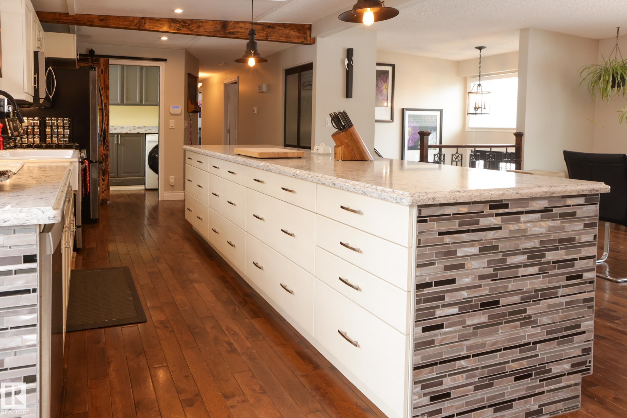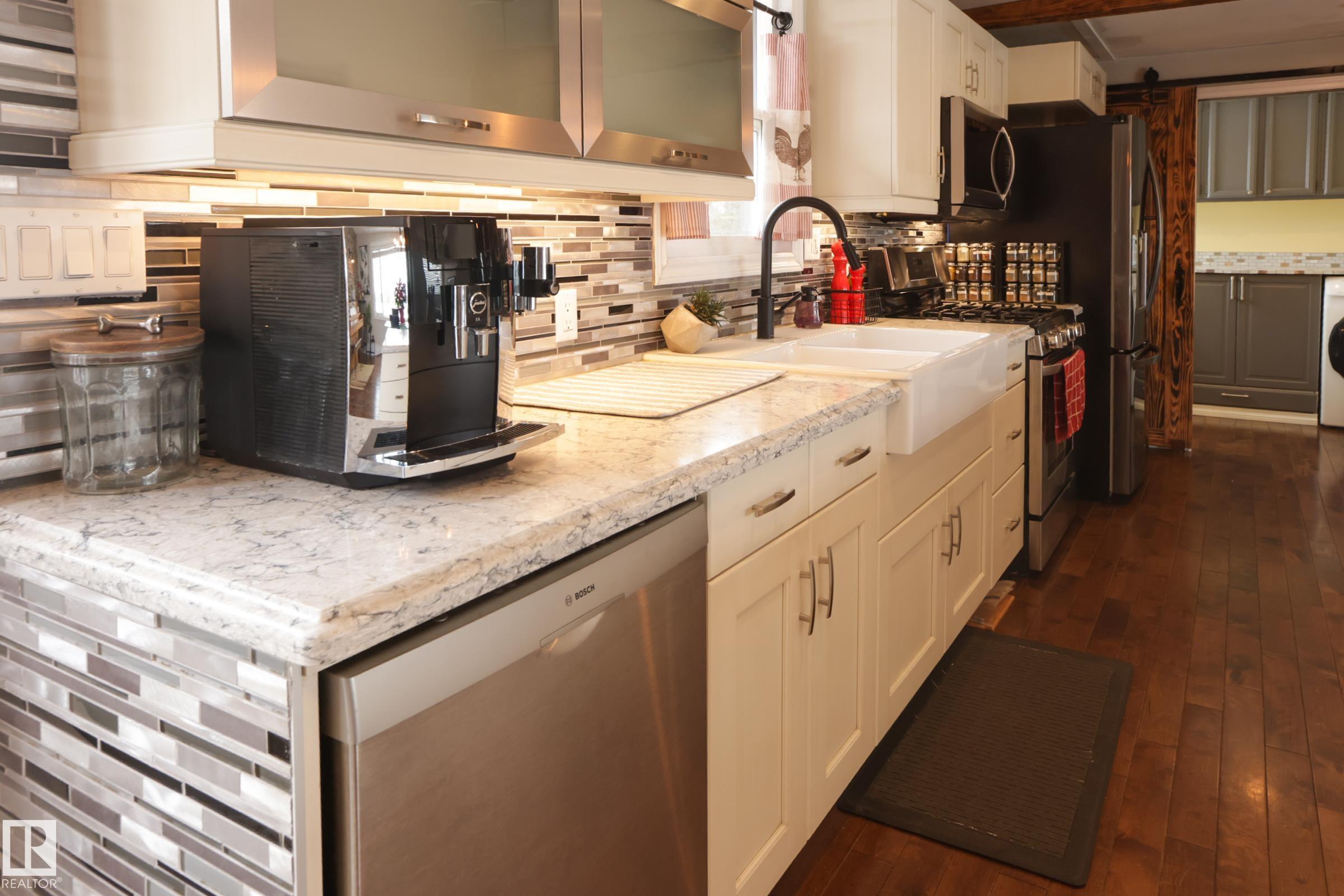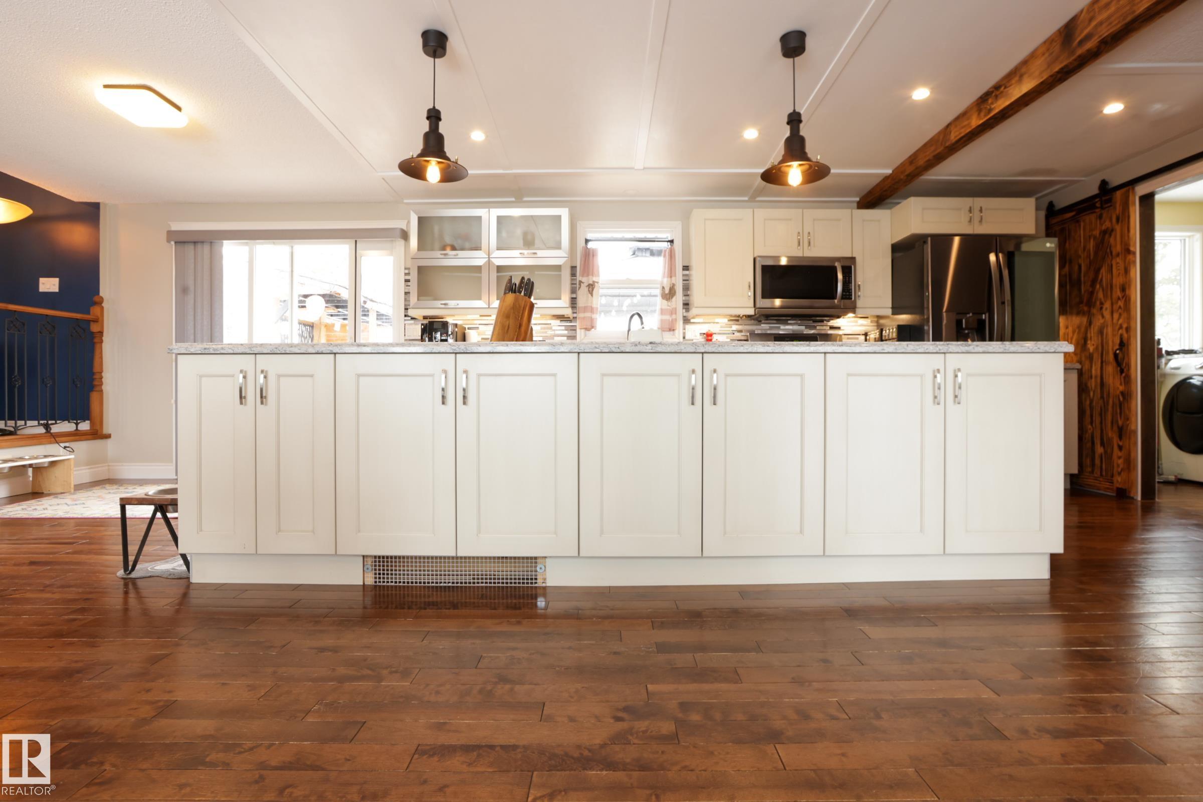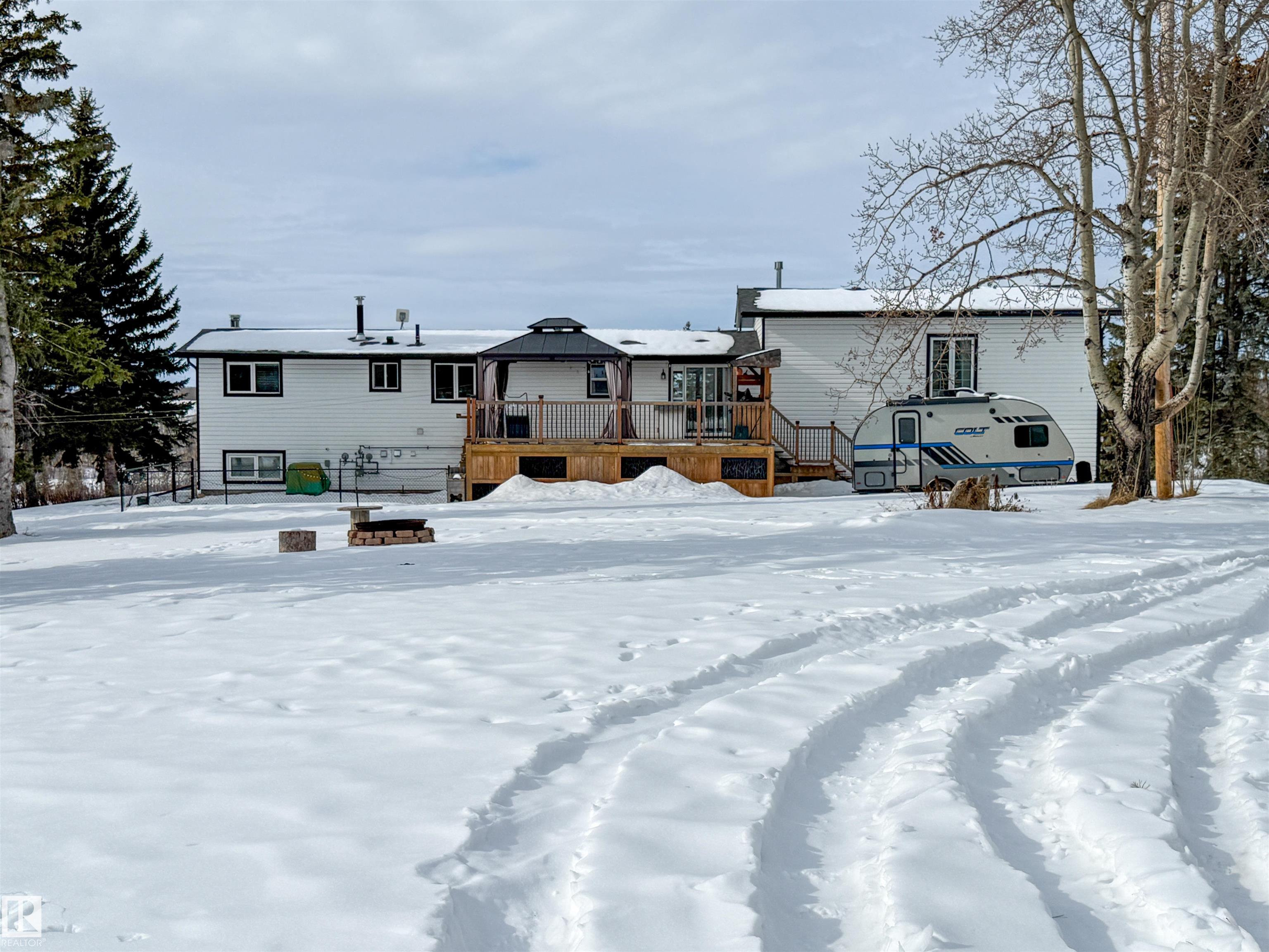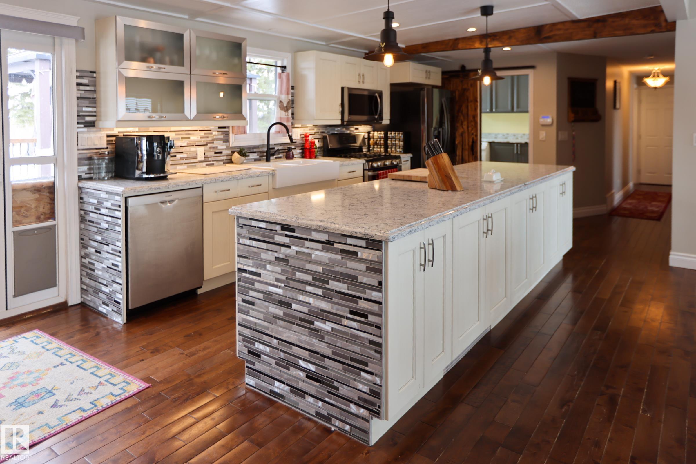BEAUTIFUL LAKE VIEW PROPERTY AT JACKFISH LAKE!! Don't miss this incredible 4+ acre property in Weekend Estates overlooking Jackfish Lake with a boat launch less than 100 meters away. This beautifully renovated bi-level home is tucked into a private treed setting and features extensive upgrades including newer shingles, eaves, fascia, soffits, windows, hot water tank, plus a brand-new furnace and central air conditioning (2025).The bright white kitchen features granite countertops, LG stainless fridge, gas stove, microwave/hood fan and under-cabinet lighting. Vaulted ceilings, hardwood floors, renovated bathrooms and two gas fireplaces add warmth and style throughout. Enjoy outdoor living with two large decks including a slate-covered deck facing the lake, plus a treated back deck with BBQ gas line and gazebo. Heated oversized double attached garage, 25x31 heated shop with 220 power, 32x20 pole shop, three sheds, drilled well and newer 5000-gallon cistern. ( 1 lower-level bedroom converted to games room)
