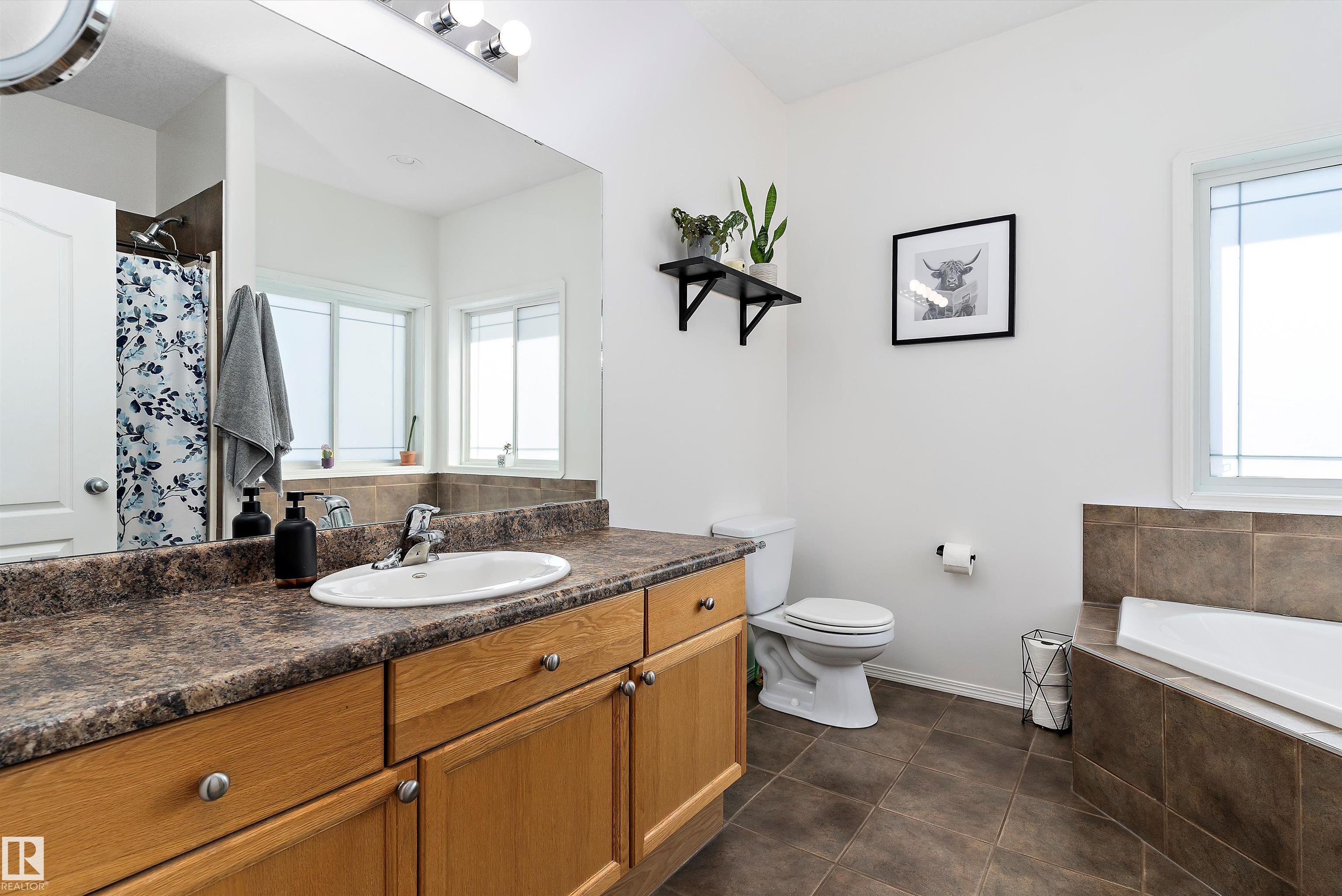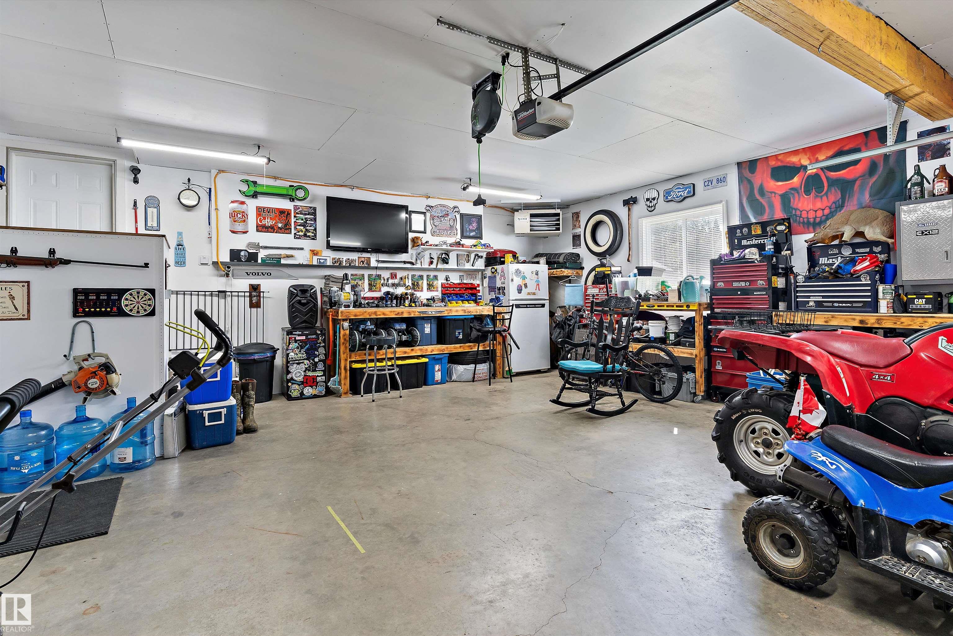 10/10 fenced acreage! Here is your chance to move into Willow Peak Park in the village of Spring Lake. This walk out Bi-level offers 3 bedrooms and 2 bathrooms. Main floor offers open concept with abundance of light. Beautiful oak kitchen with lots of storage, island, peninsula and walk in pantry and new appliances. Cozy living room with gas fireplace and vaulted ceiling. The main floor offers 2 bedrooms and a 4 piece bathroom. Just a few steps up will lead you to the large primary bedroom with a huge walk in closet and 4 piece bath with corner tub. The basement has large family room and laundry room. Additional basement space for a bedroom and bathroom. Two tiered deck allows for great entertaining in this private yard. Lots to explore on this beautiful property,walk down to the trees for a separate secluded fire pit area.Double attached garage with ample parking for vehicles and RV'S. Upgrades include new hot water tank (2023) Garage door(2024) and fence(2024) close to Blueberry school and Stony Plain