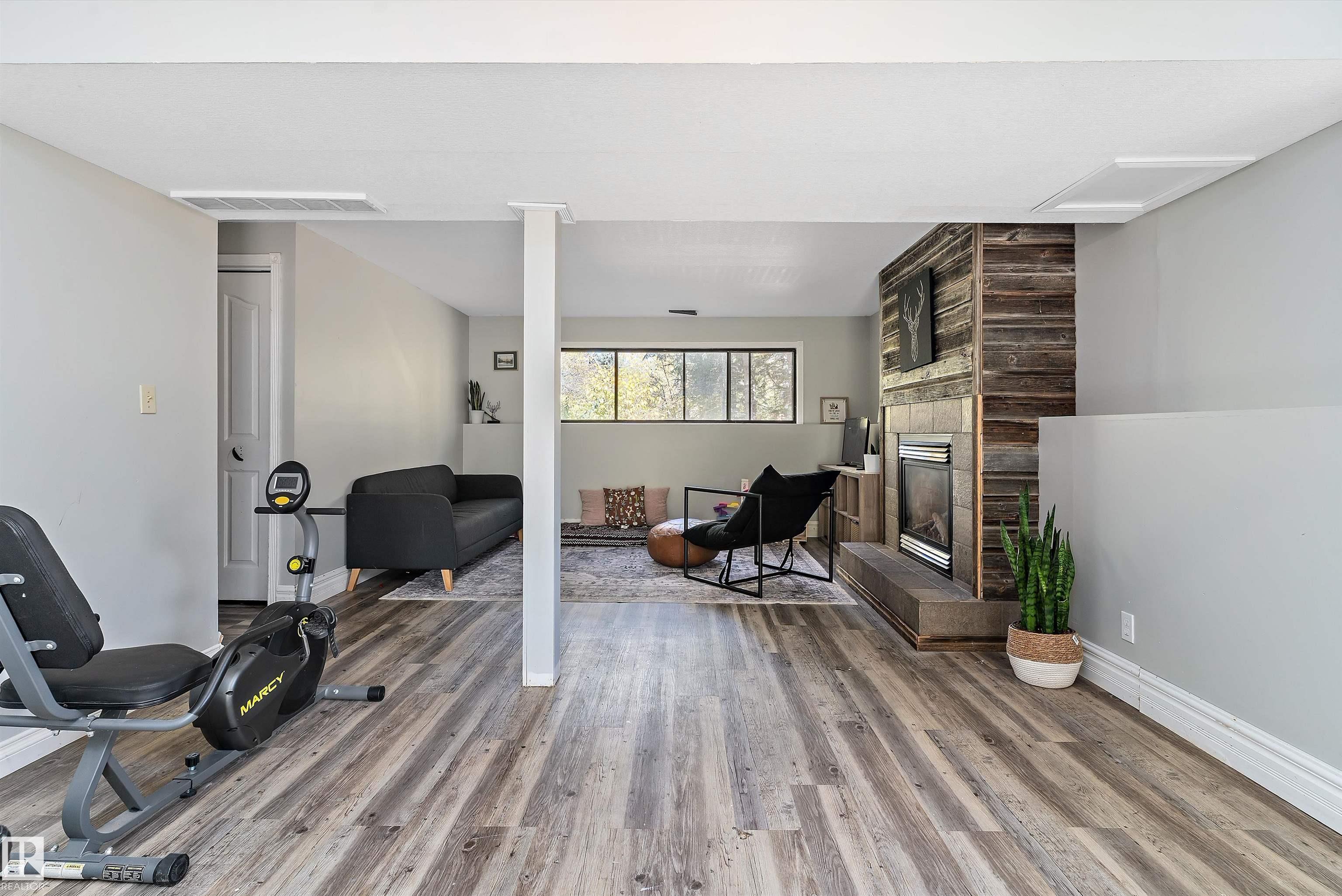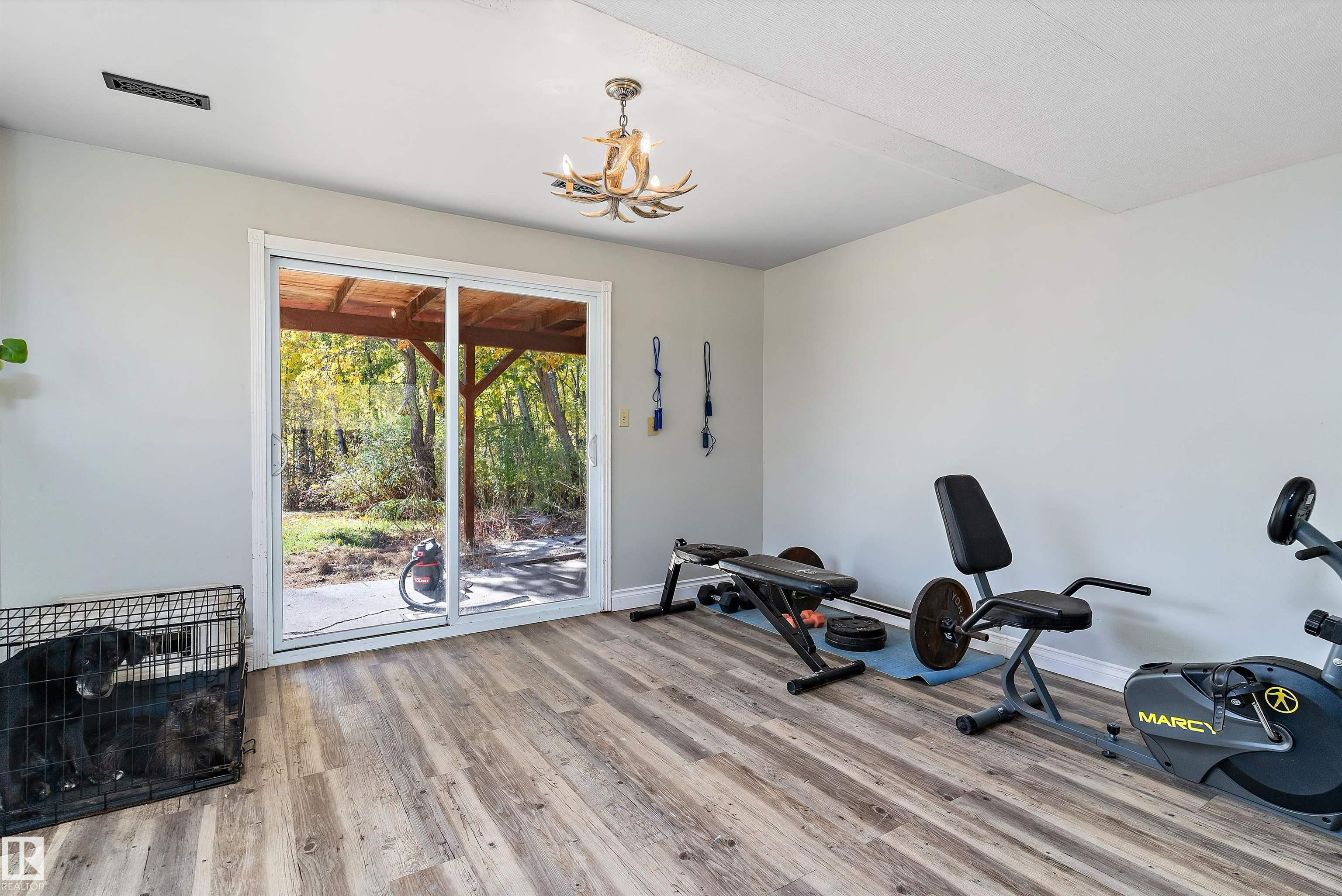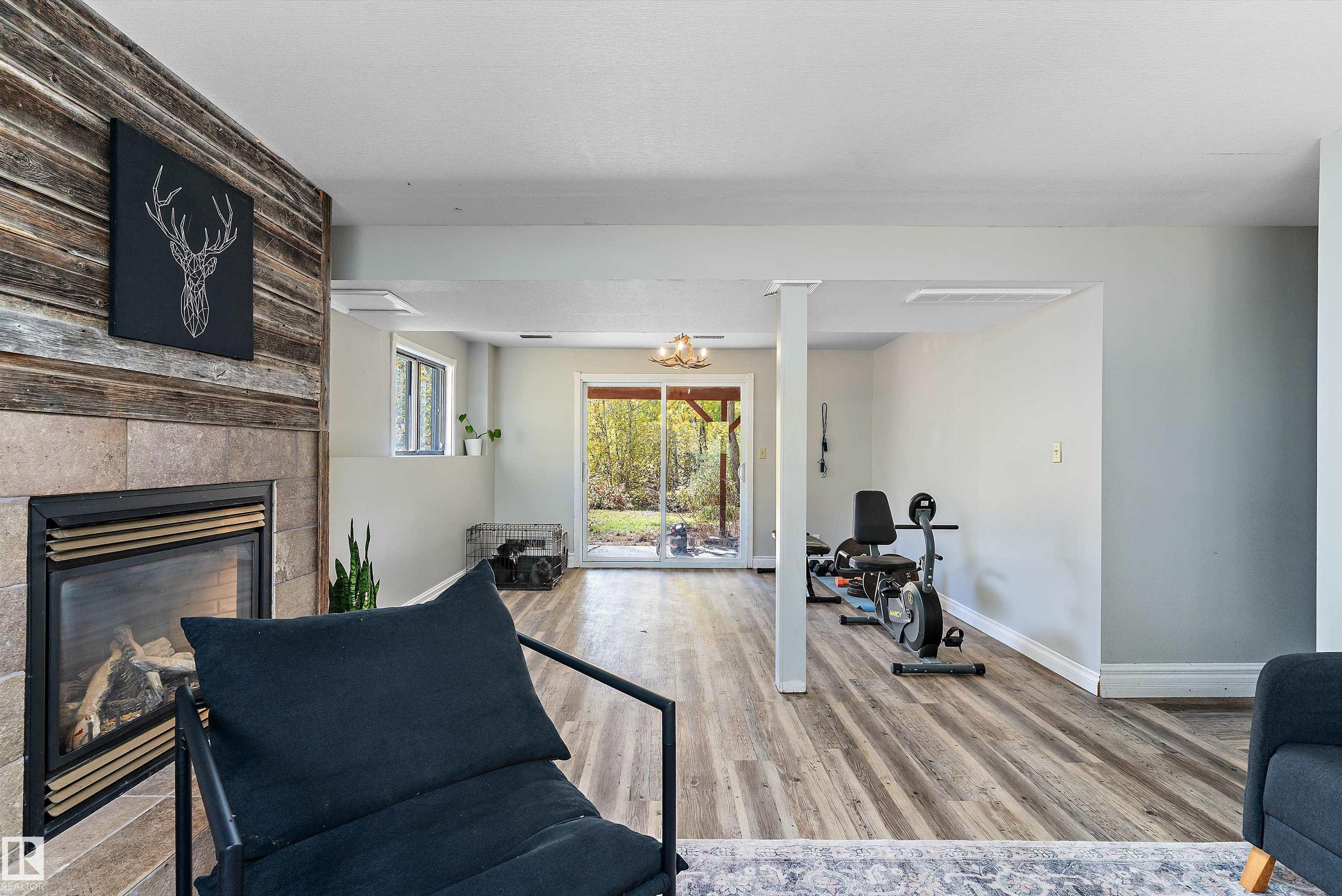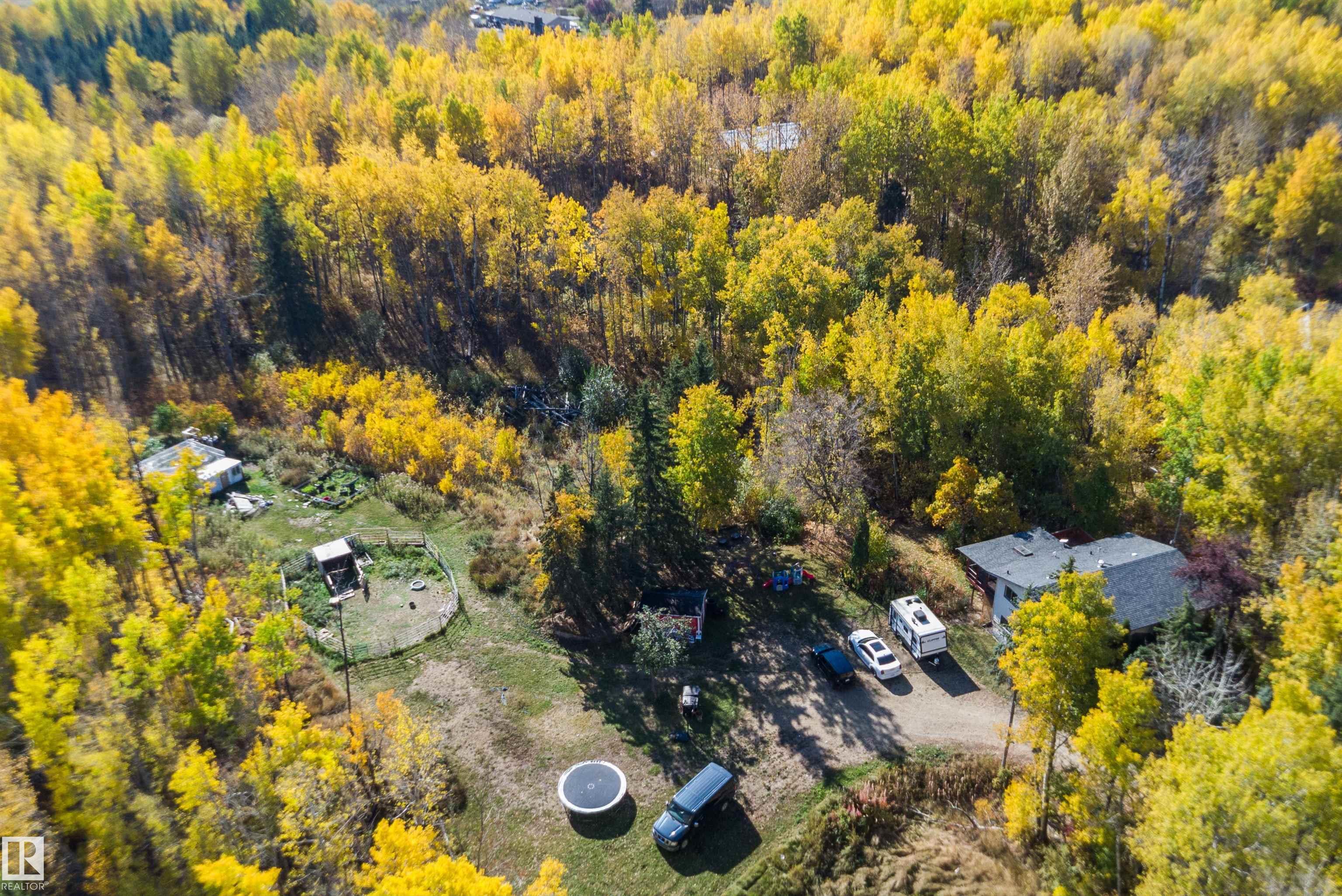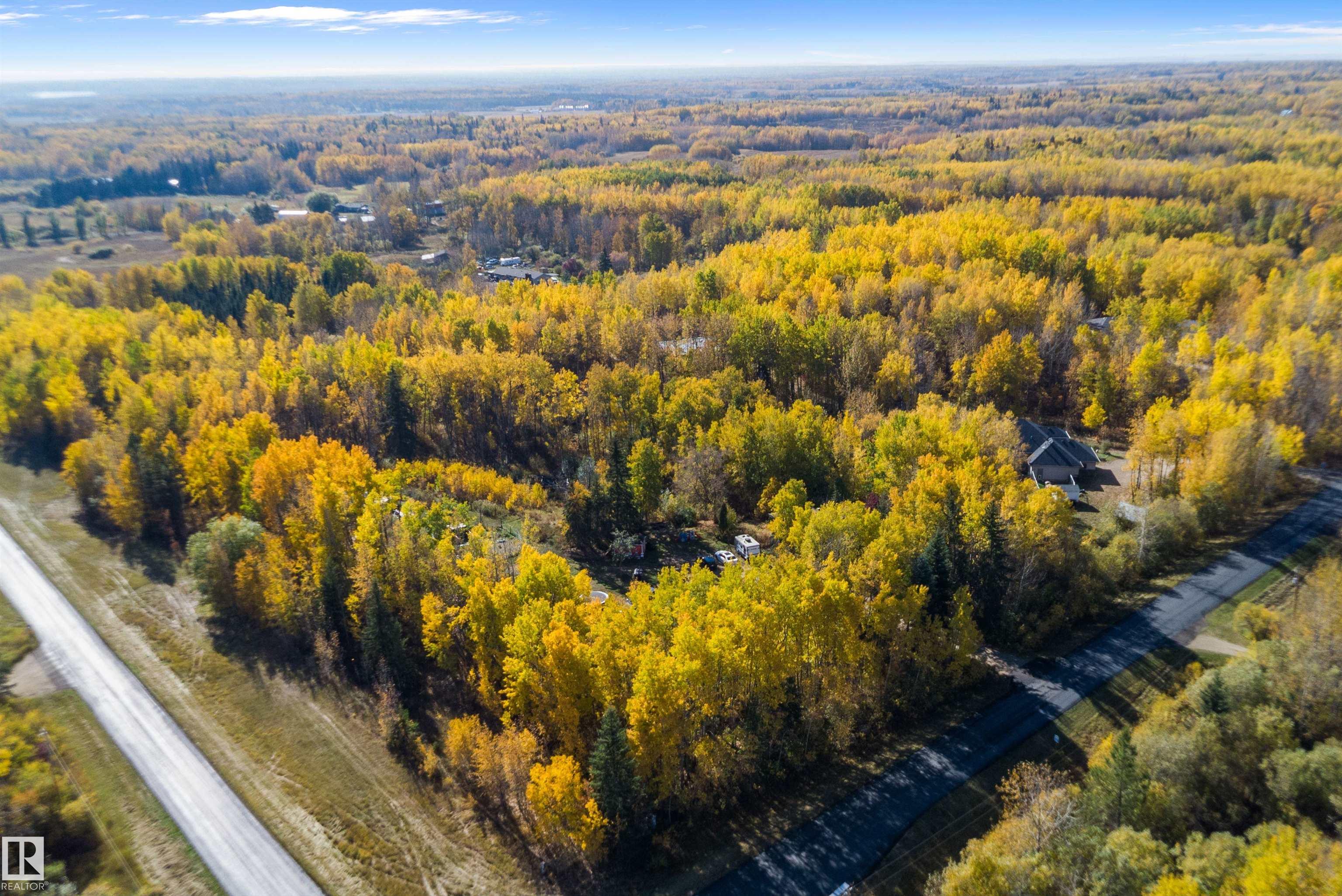 Welcome to your acreage oasis. This treed lot offers 3.98 acres of unlimited options. Fenced for horses, chicken coops, and a mature garden to lower your grocery bill. Just a short drive to Stony Plain, with a newly paved road right to the subdivision and paved roads in the subdivision will save your vehicles from gravel. 6 month old appliances included. An open concept floor plan with a large island and quartz countertops. Fully finished walkout basement with 2 additional bedrooms and a bathroom, a rec room, and family room with a gas fireplace.