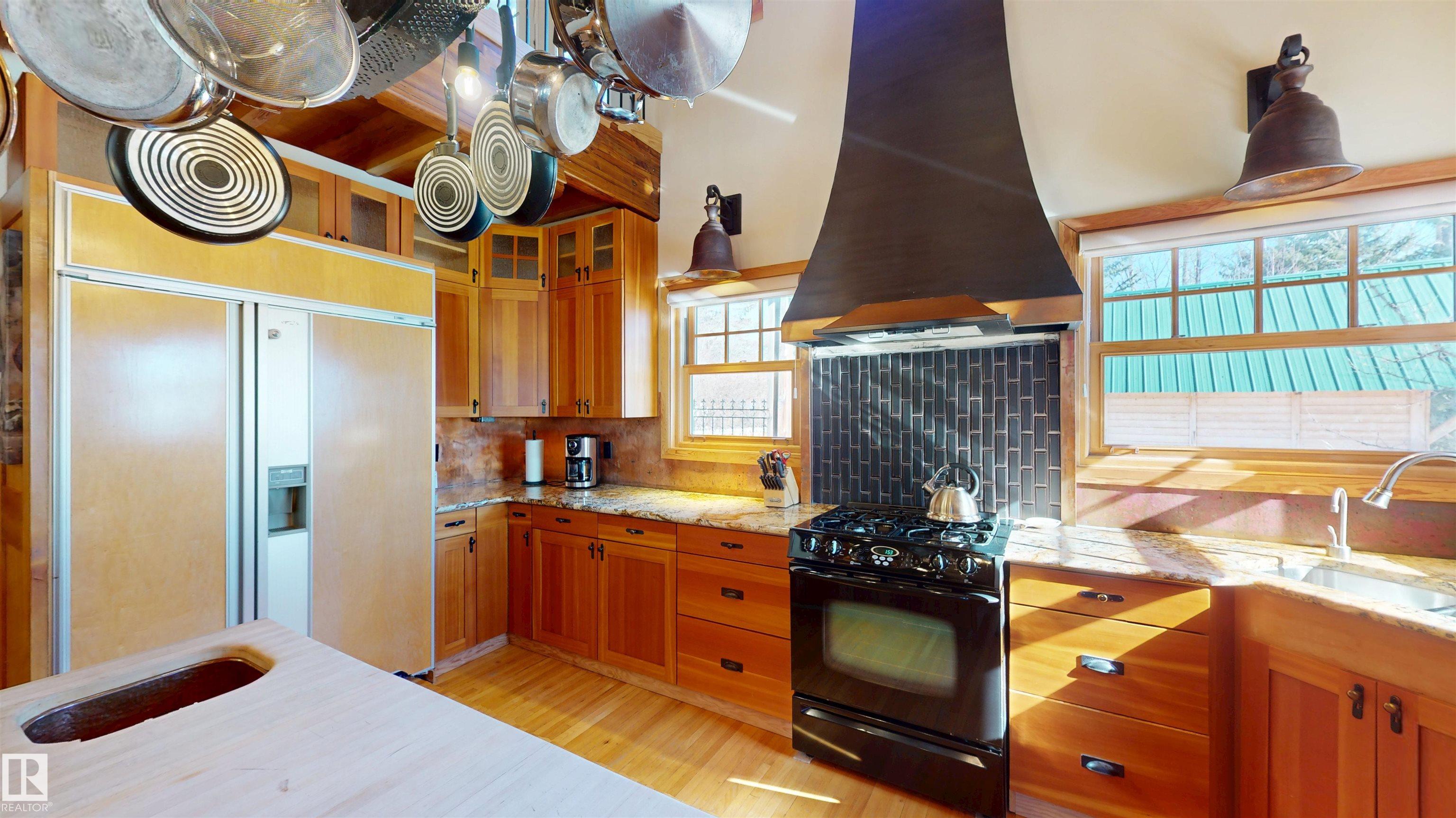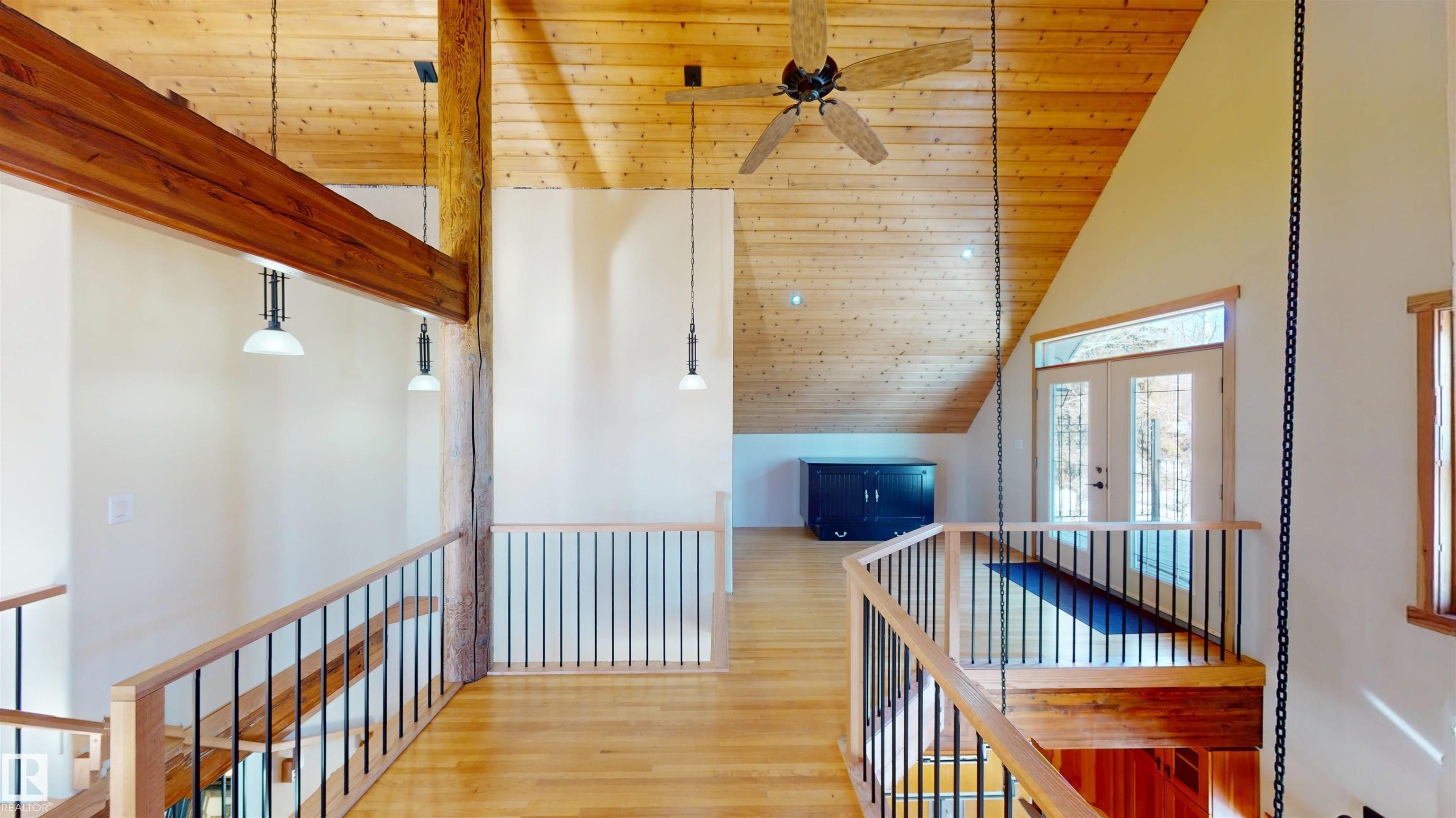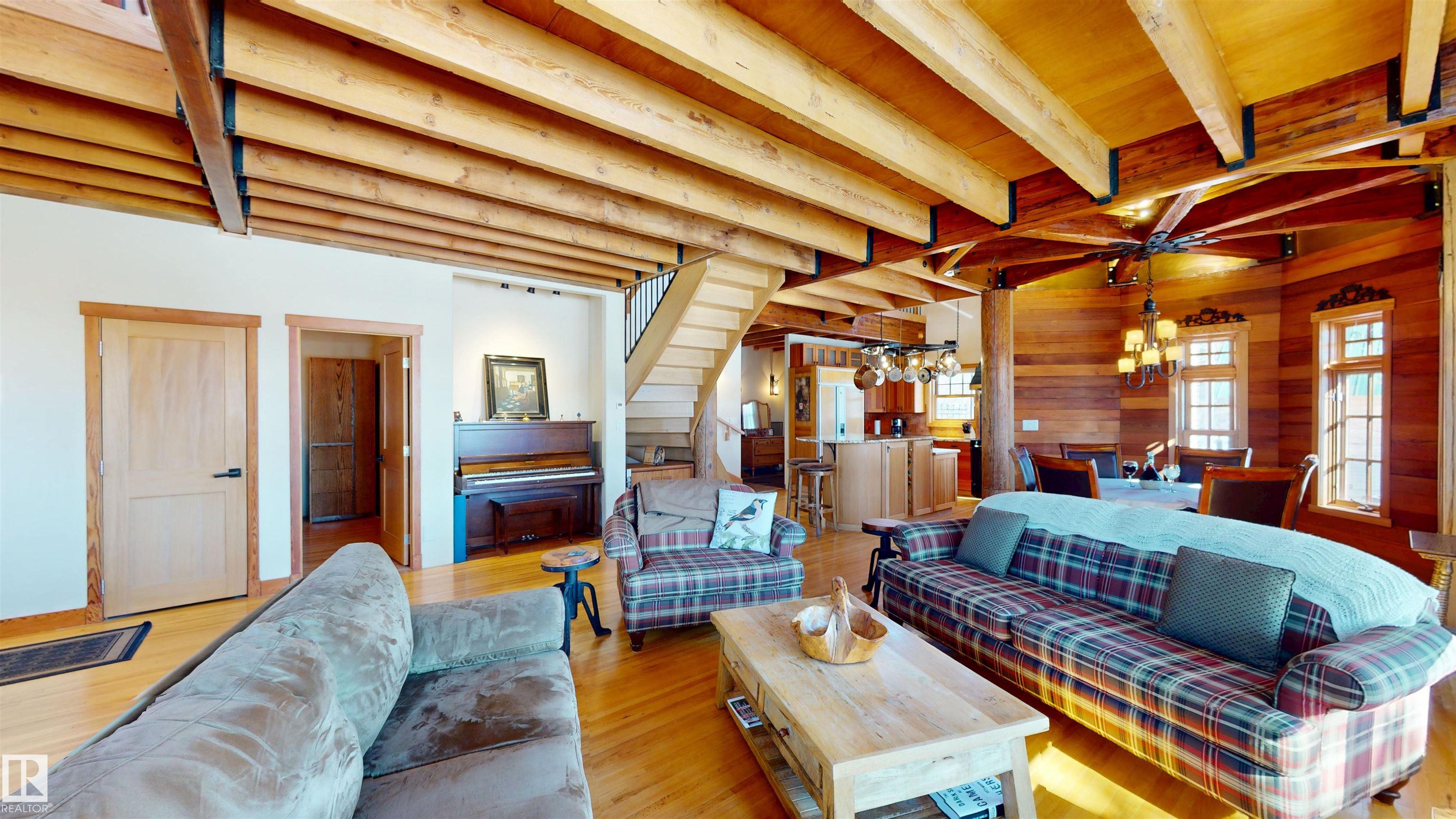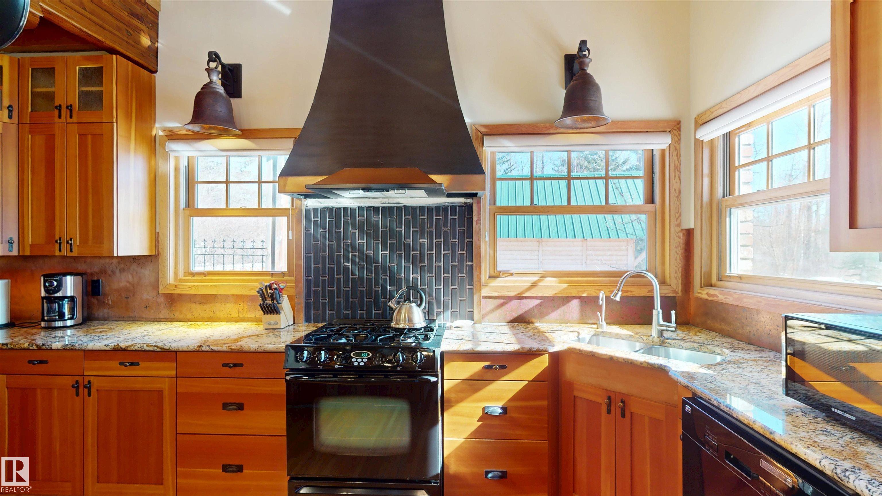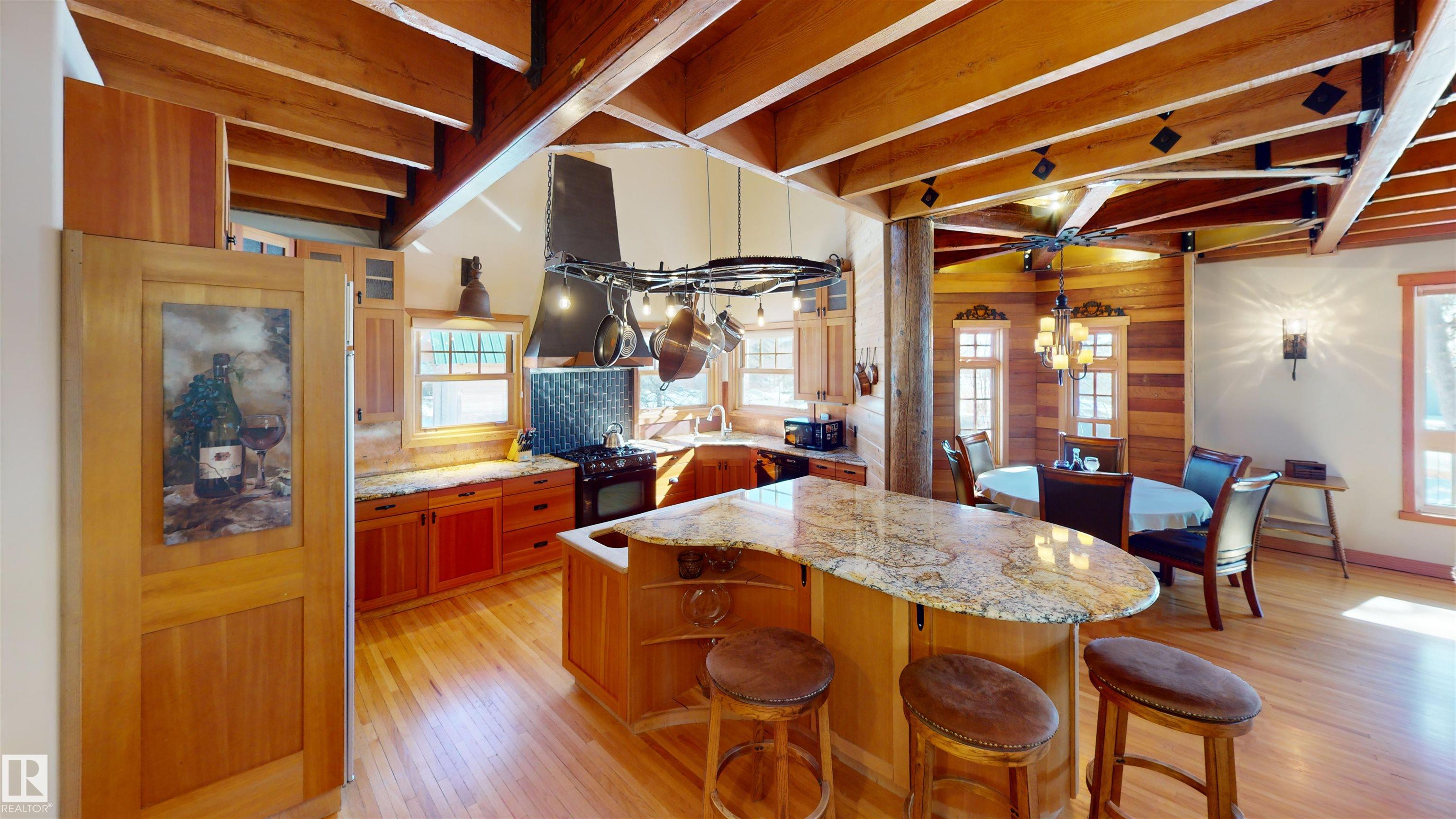 This striking home blends timeless character with standout design in a private, nature filled setting. Rich brickwork, dramatic rooflines, and a signature turret create unforgettable curb appeal, while expansive windows and upper balconies capture natural light and scenic lake views. Step inside from the beautifully landscaped yard into a truly one of a kind interior. The kitchen features custom wood cabinetry, granite countertops, a grand piano shaped island with bar seating, and premium appliances. The octagonal dining area impresses with vaulted ceilings, copper detailing, and wraparound windows. A stunning floor to ceiling brick fireplace anchors the living space. Upstairs offers a bright loft with vaulted pine ceilings, custom railings, and access to two balconies. The upper turret level, plumbed for a wet bar, doubles as a cozy retreat with incredible views. Complete with a spacious primary suite, ensuite bath, and refined finishes throughout, this home truly comes with all the bells and whistles!